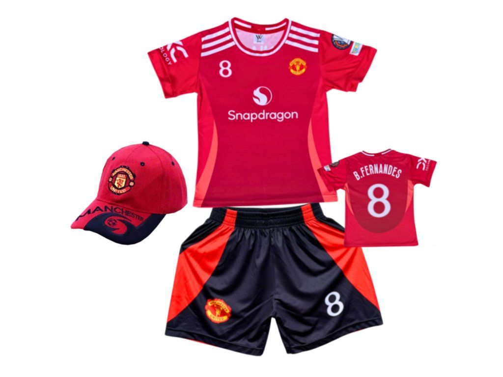 Premium dětský fotbalový dres + fotbalová kšiltovka FC Manchester United - Bruno Fernandes Č.08
