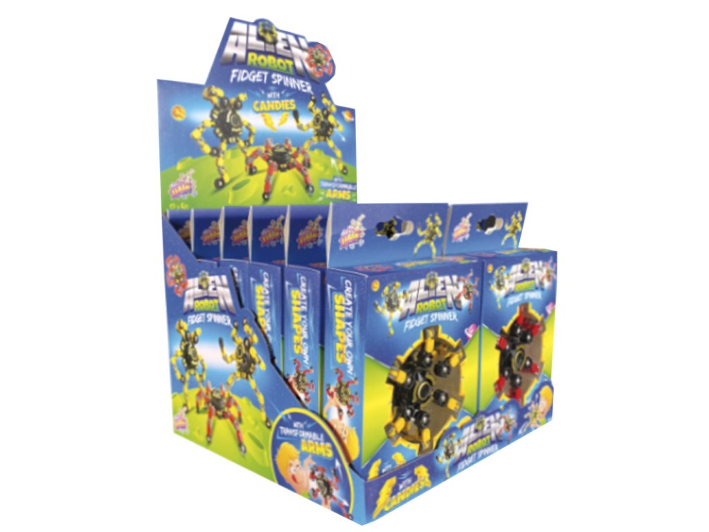 Spinner Alien Robot v dárkovém balení s citrónovými bonbóny (5g).