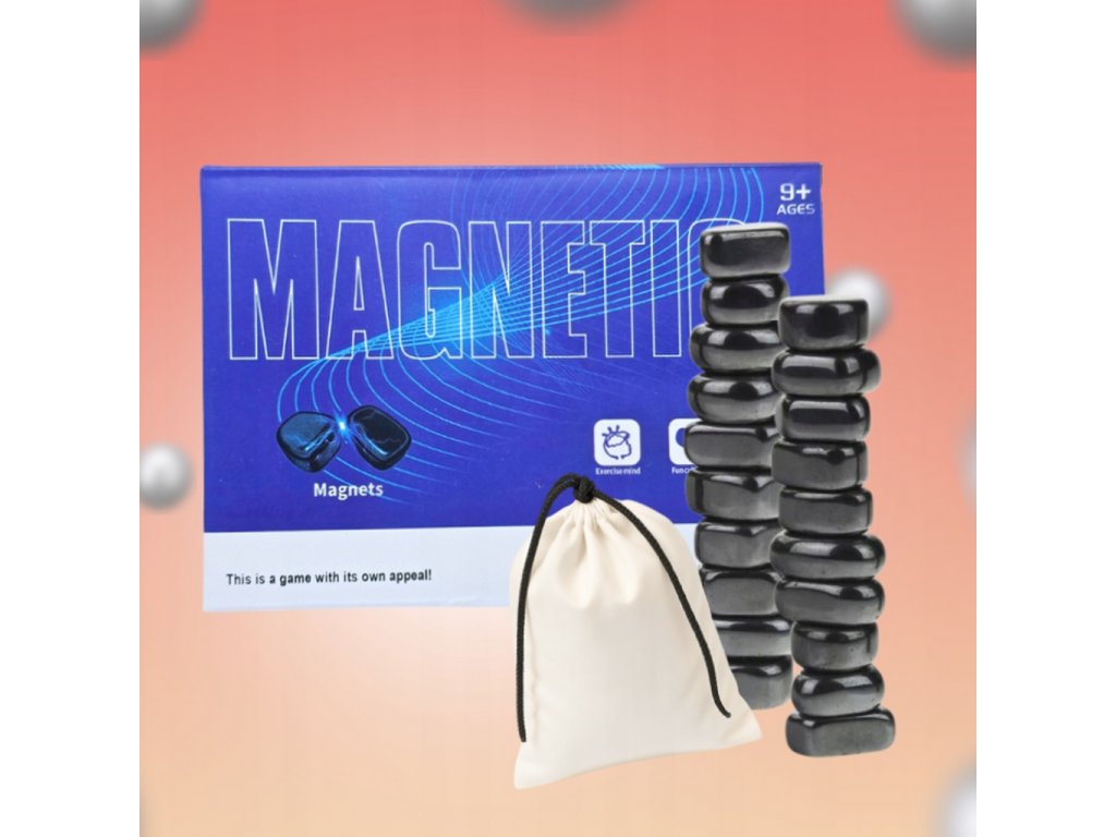 Chytrá a zábavná stolní hra pro děti i dospělé: magnetické kamínky od značky Woopie. Procvičíte si strategické myšlení, trpělivost a předvídavost, zatímco se snažíte jako první zbavit všech magnetů. Jednoduchá pravidla, ale nepředvídatelný průběh a spousta smíchu pro celou rodinu.