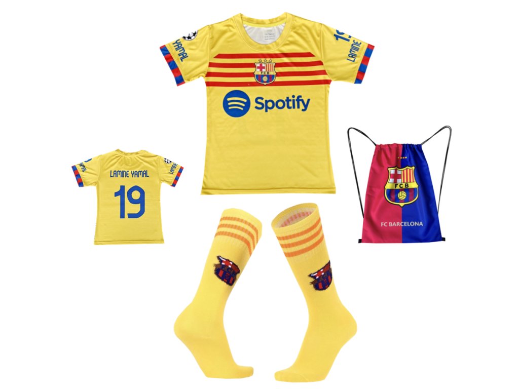 Premium dětské fotbalové tričko + Zatahovací vak a ponožky FC Barcelona - Lamine Yamal 19