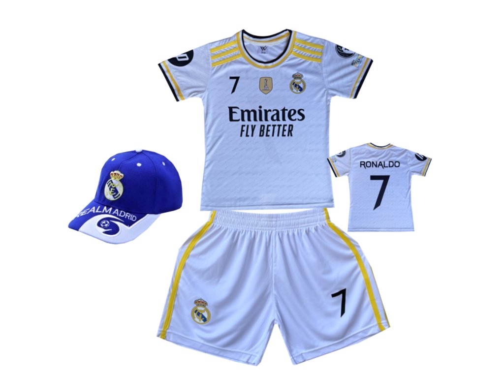 Premium dětský fotbalový dres + fotbalová kšiltovka - Real Madrid FC - Cristiano Ronaldo CR7( Fly Better )