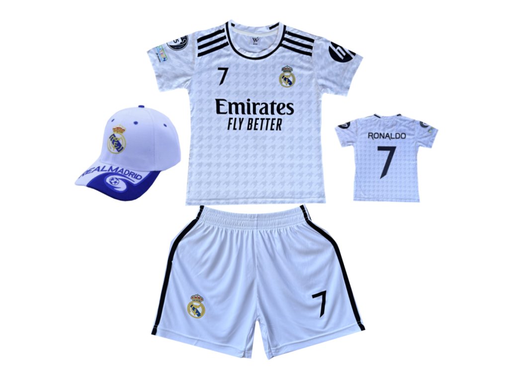 Premium dětský fotbalový dres + fotbalová kšiltovka White - Cristiano Ronaldo CR7 Fly Better