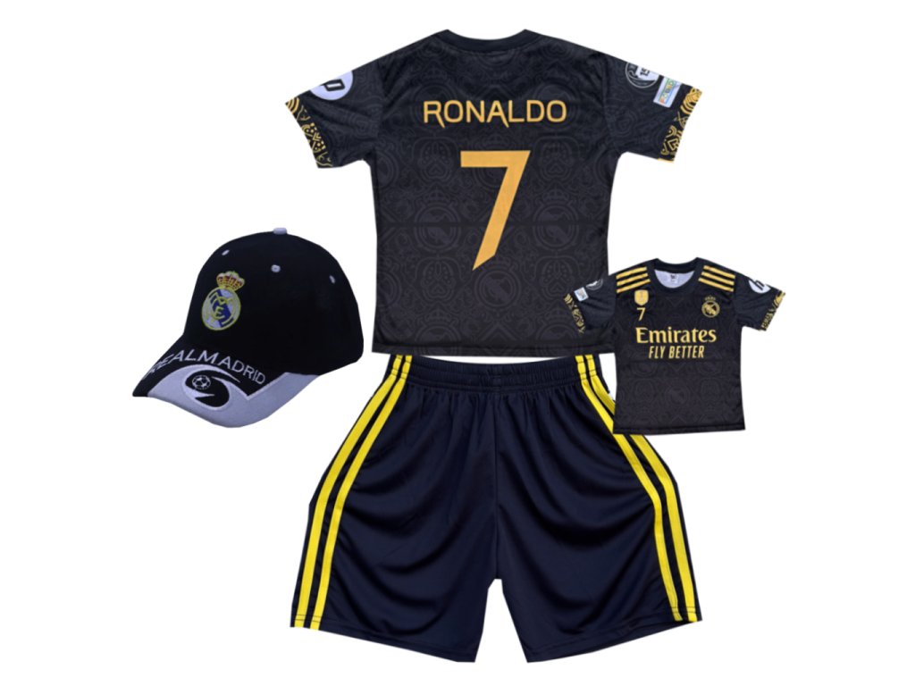 Premium dětský fotbalový dres Komplet + Fotbalová kšiltovka Real Madrid AWAY.A1 - Cristiano Ronaldo CR7 (AWAY)