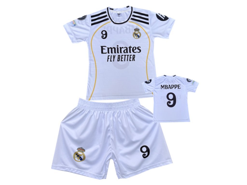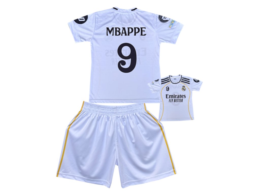 Premium dětský fotbalový dres Komplet Real Madrid 2025/26 – Mbappé 9