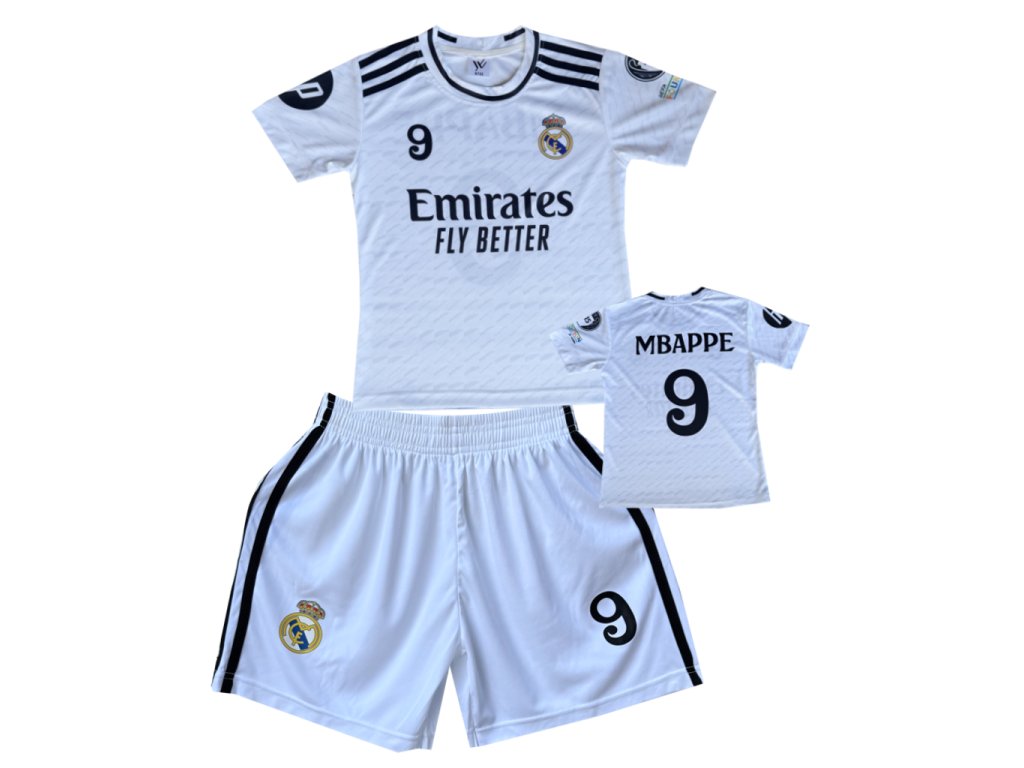 Premium dětský fotbalový dres Komplet Real Madrid Emirates Fly Better B1 - Real Madrid CF - Kylian Mbappe 9
