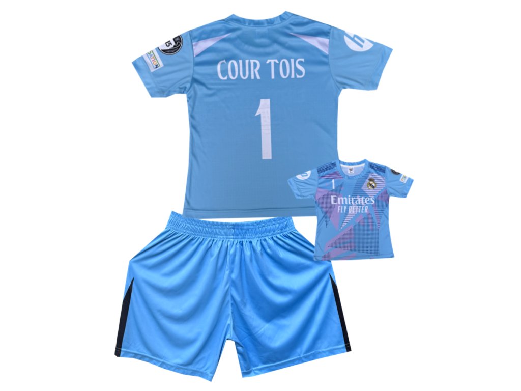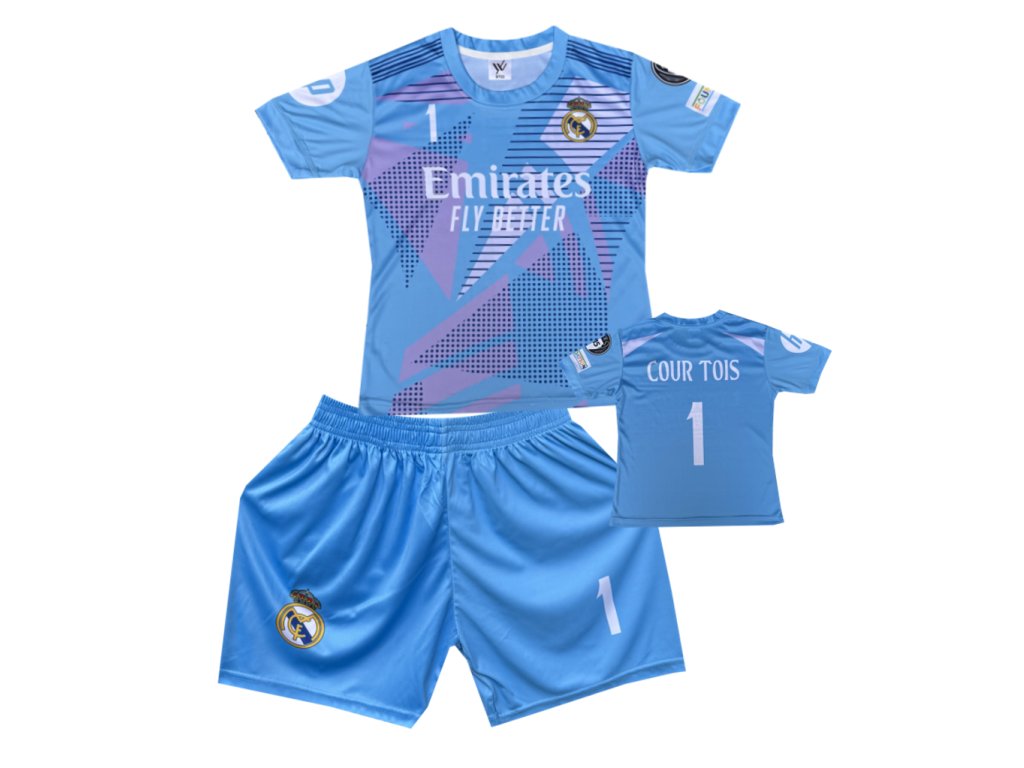 Premium dětský fotbalový dres Komplet Real Madrid Emirates Fly - COURTOIS.Č1