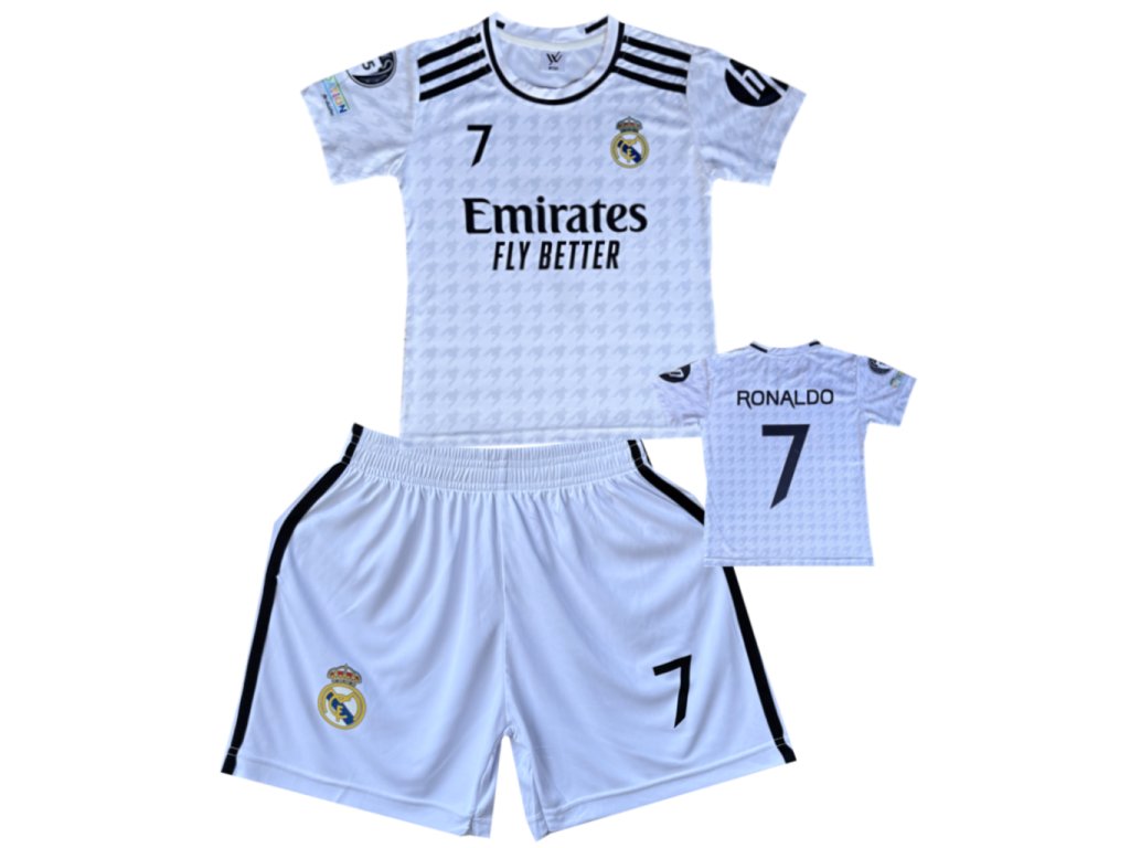 Premium dětský fotbalový dres Komplet Real Madrid White- Cristiano Ronaldo CR7 Fly Better